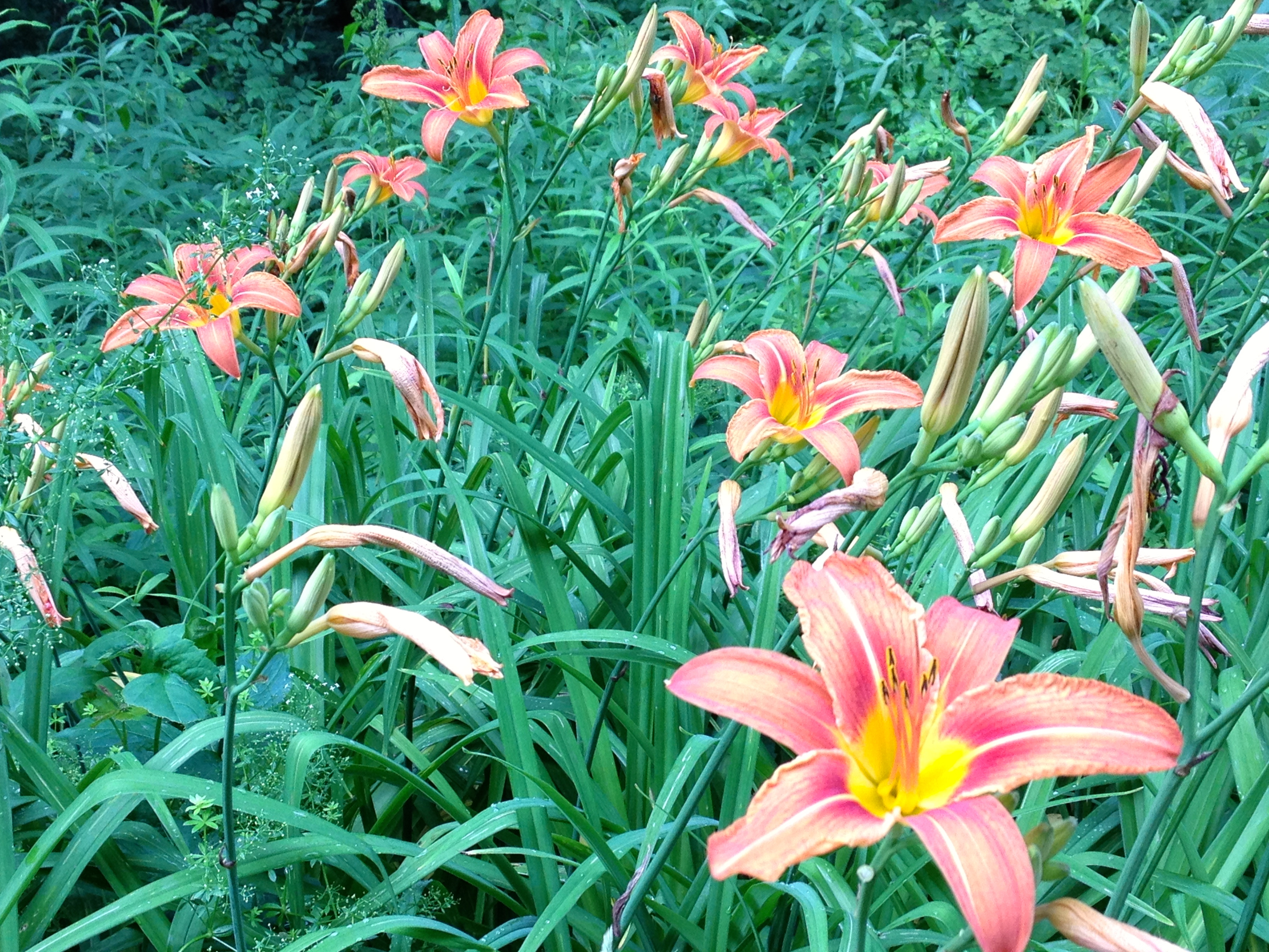 IMG_1246Daylilies are everywhere now. They line the roadside in thick ranks. They steal into the garden border among the phlox, “volunteering” for duty. But they should be dug up immediately, because they spread so quickly and are almost impossible to root out. They can’t be cut for bouquets, either, as the flowers fade so quickly. They can only be admired for what they are and for as long as they last — as “wild and precious” as life itself.  Here’s a poem by the great American nature poet Mary Oliver on the subject. (For more on Mary Oliver, please visit: https://www.poets.org/poetsorg/poet/mary-oliver)