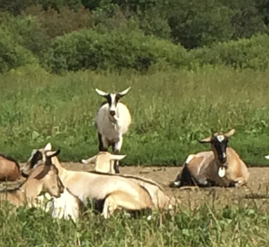 Last weekend we drove over to Monterey, Mass. where, years ago, we had spent many happy summers. The old brown-shingled Cape we rented there was a mile or so down the road from Rawson Brook Farm which makes and sells Monterey Chèvre cheese. We used to walk from our place to the farm at least once a week along one of the prettiest stretches in the Berkshires. Nothing much has changed. New Marlborough Road still meanders past fields of corn flowers and goldenrod, over a brook, up a hill lined with ancient maples, and down into a long valley. Follow the road over the brook again and there off to the left, you’ll see a herd of American Alpine goats, sunning themselves in a paddock.