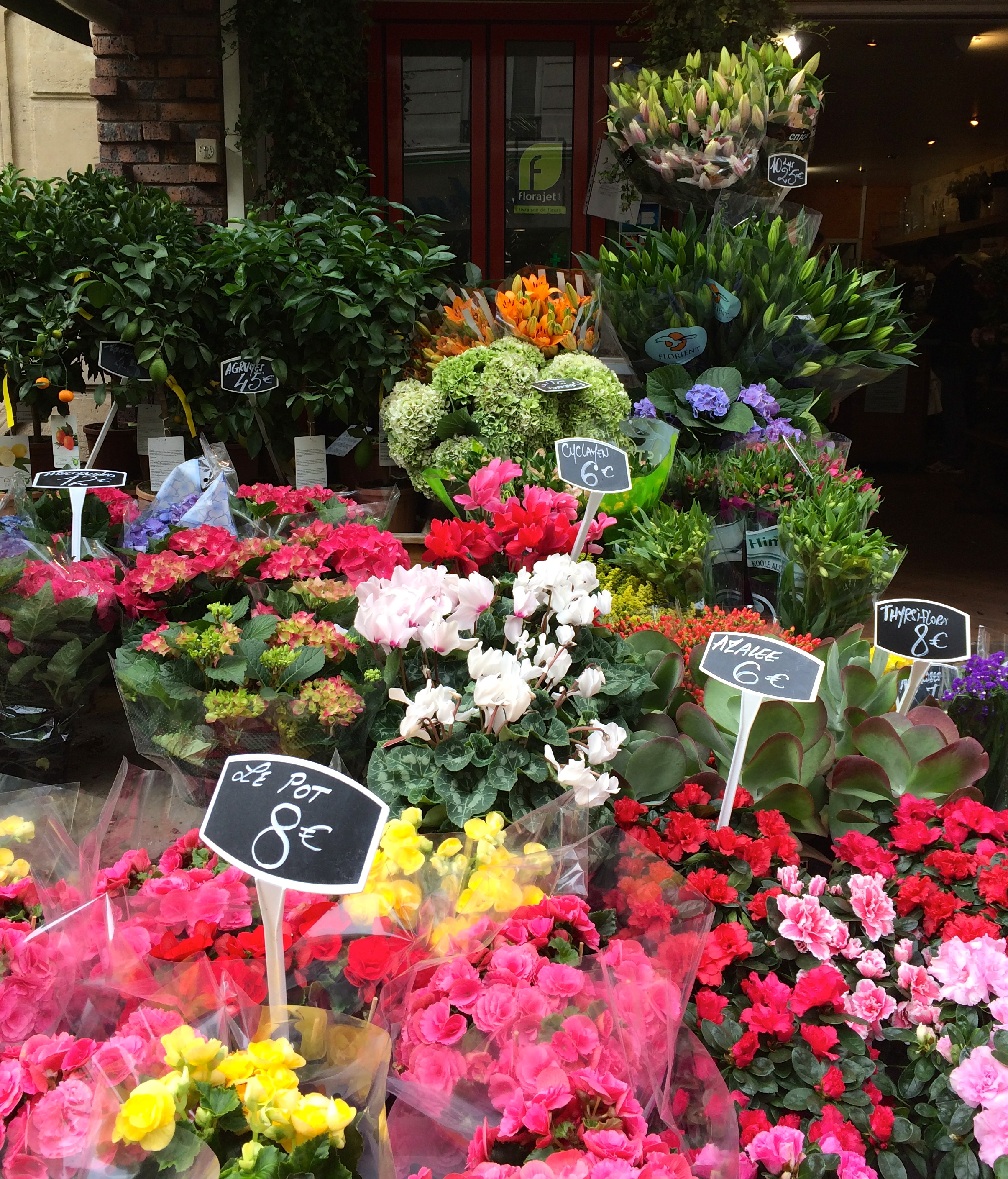 IMG_1270Every neighborhood in Paris has its own open-air “marché volant” which literally means “flying market” because it seems to pop up magically a couple of times a week around 8:00 in the morning and then disappear again without a trace a little past noon. It is here under canvas tarps and among wooden stalls that you’ll discover the choicest fruits and vegetables, the freshest fish, poultry, and flowers, as well as delicious, locally grown or made, IMG_1267organic eggs, milk, cheeses, and breads that you’re unlikely to come across anywhere else in the world. Most of the produce is less expensive than what you’ll find in a typical Paris supermarket — and it’s displayed with an imagination and flare that is uniquely French.