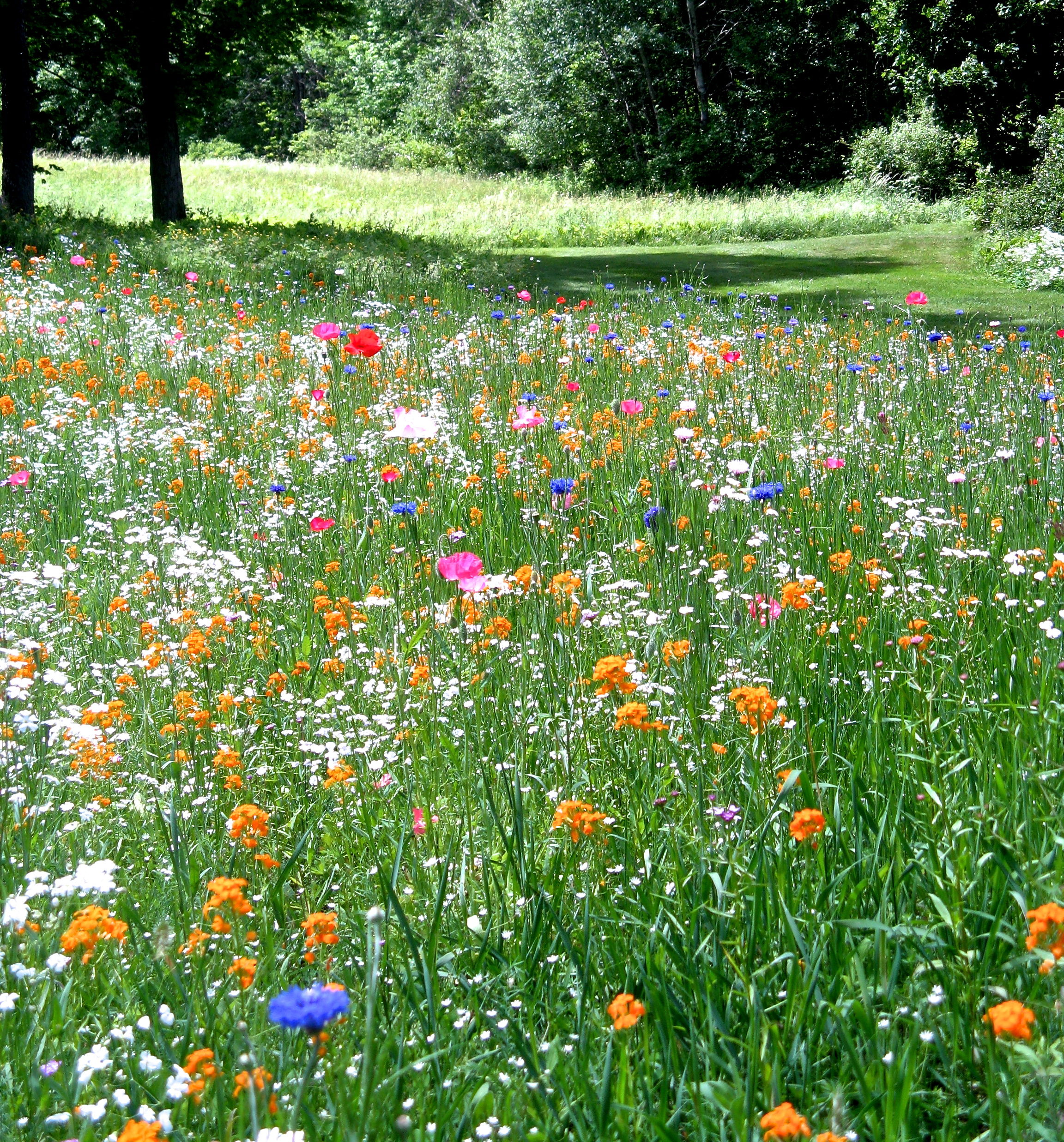 I use a mix of annuals and perennials, so the first summer of freshly seeded wildflowers tends to be a bright splash of cosmos, poppies, corn flowers, and snap dragons. The perennials usually start to take hold the second year, but the wonderful thing about a wildflower field is that — well — it’s wild.
