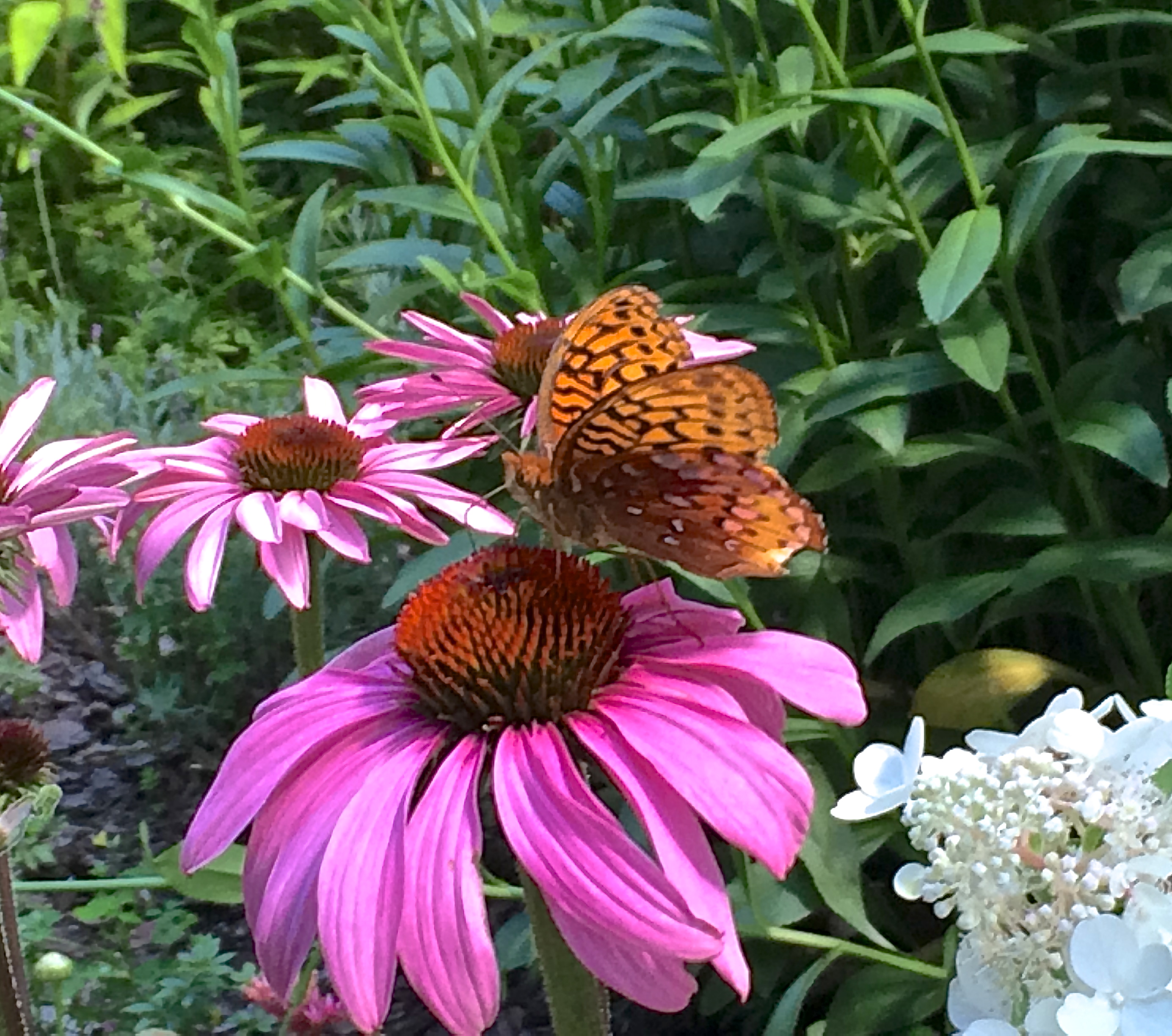 Thanks, Annette. I think the butterfly is a Fritillary of some kind — and, yes, echinacea belong to the daisy family. They now have many beautifully colored hybrids — whites and golds among them. I love them, even as they start to fade…