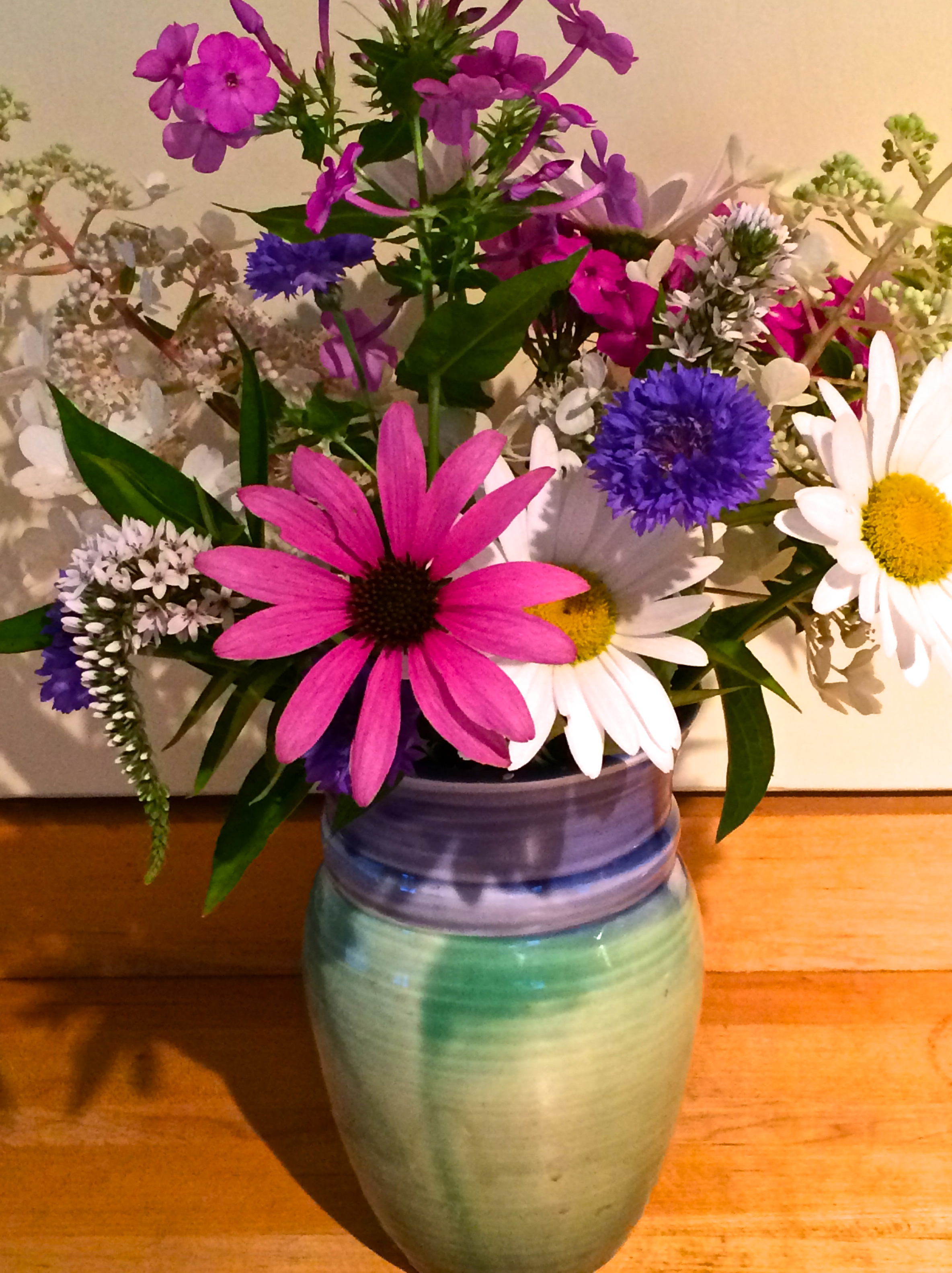 Nice, and just love that vase of flowers. I live, for now, in central eastern Maine…there is already a feel of late summer in the air. A lot of goldenrod and other signs.