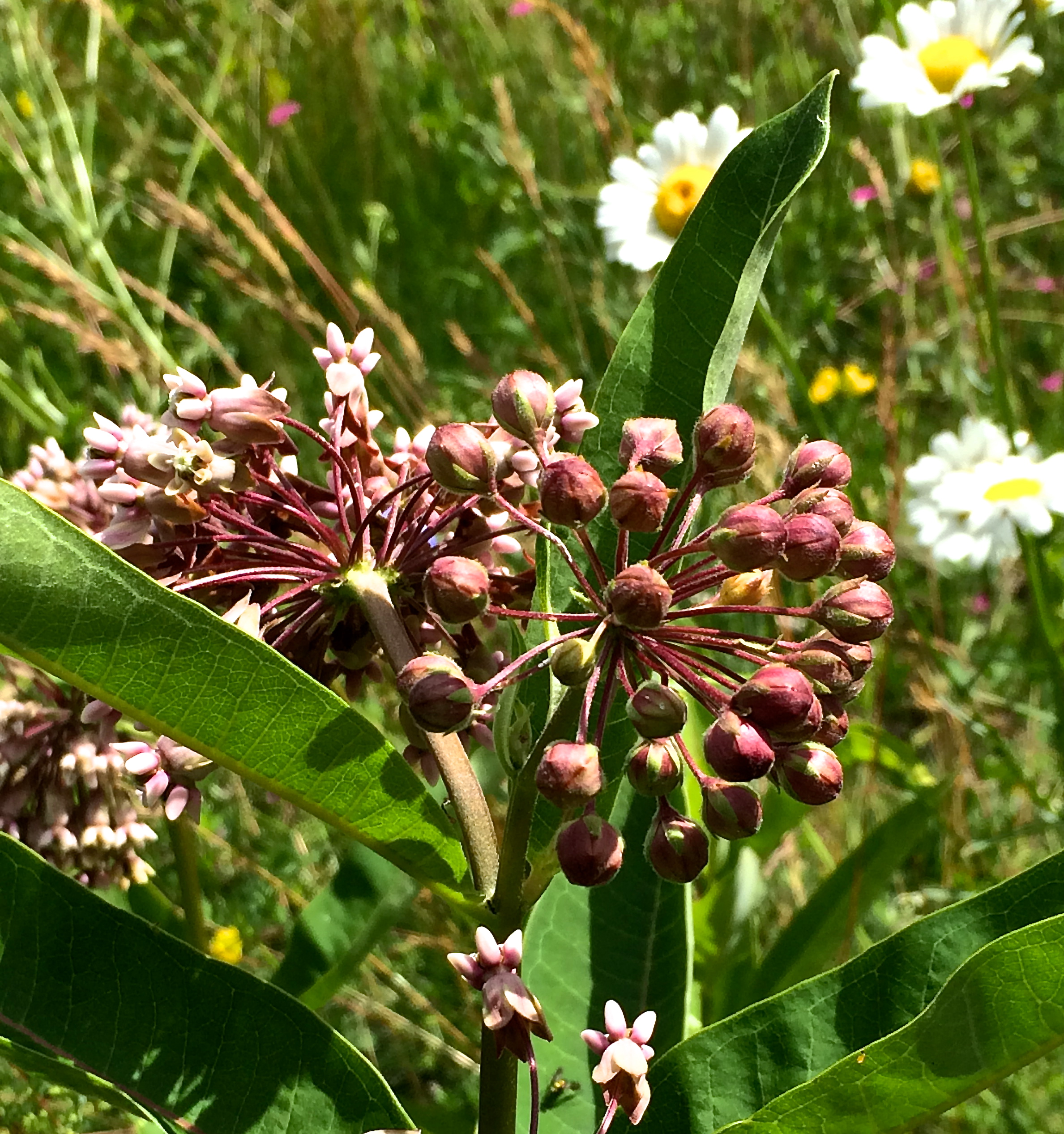 And then, in June, I came open this odd, complicated looking plant at the far end of the field — featuring ranks of leaves and heavy pods. Soon, there were fist-sized round pink flower heads that looked like fireworks in mid-explosion. I wasn’t surprised to learn milkweed is one of the most complex structures in the plant kingdom, comparable to the orchid in its many shapes and parts. It’s also one of the most beautiful — a fascinating thing to watch grow and develop.