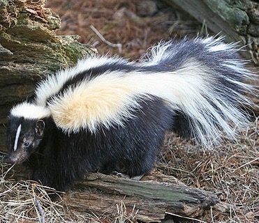 Skunks have very few predators, except for clueless dogs and speeding automobiles (skunks also have very poor eye-sight). We’re not the only mammals who don’t want to risk getting sprayed. Wolves, foxes, and badgers all turn tail when they spot a skunk coming their way. That’s why skunks can sashay around the countryside, flaunting their eye-catching black and white furs like Park Avenue socialites at a PETA rally. We never did actually see our home invader, despite the traps that were set up outside around the house. The smell is finally starting to fade. Though on damp days such as this one, you can still catch a whiff drifting up the stairs. An olfactory reminder of the wild world that exists just outside our door.