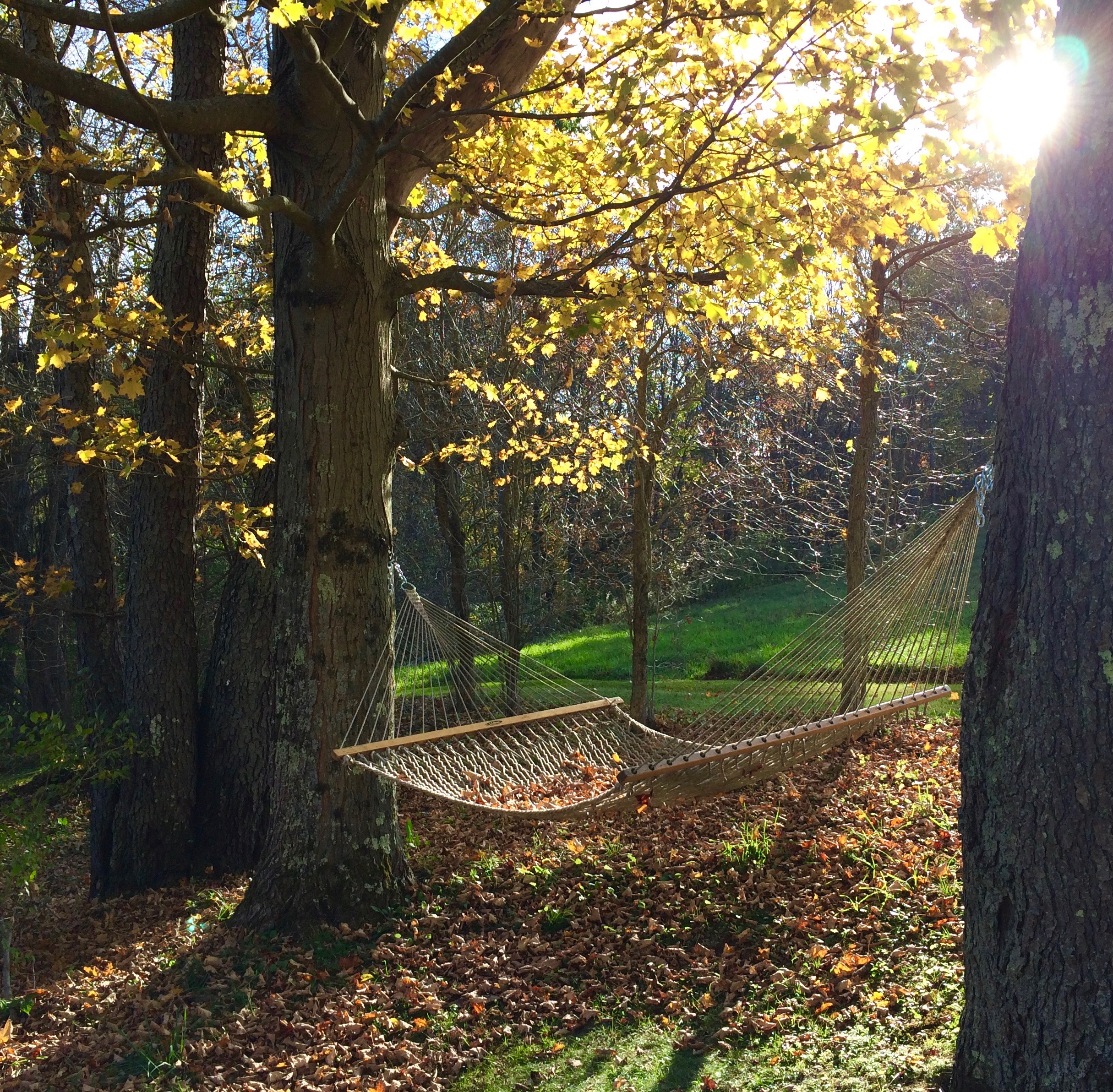 We usually wait until the last minute to take down the hammock. Strung between two old trees at the edge of our upper field, it’s a reminder of the best of summer: warmth, the