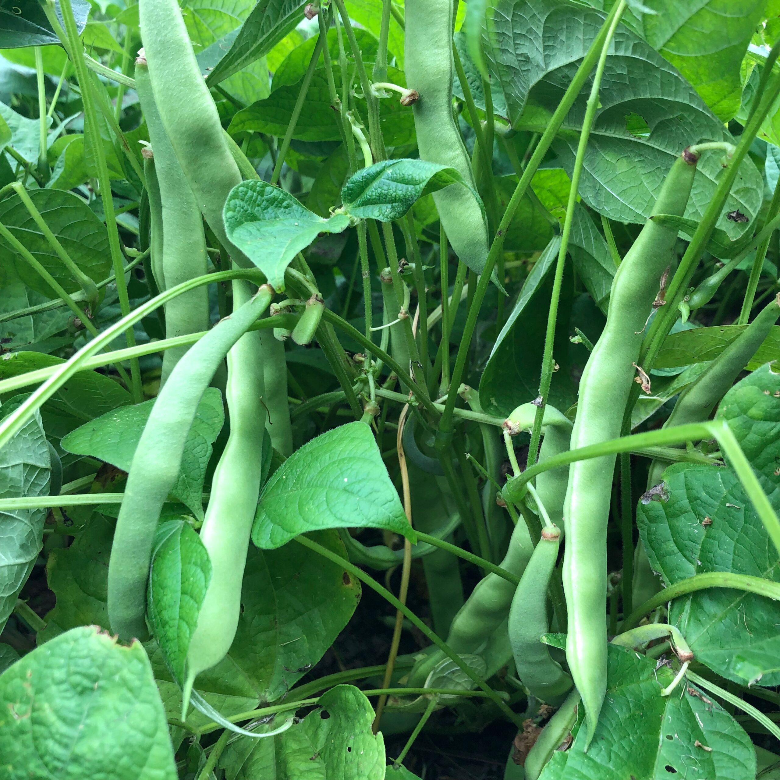 I’ve always loved them. Long, broad, and flat, Romano beans look like professionally ironed versions of their string bean cousins. They were called “Italian beans” when I was growing up, only available frozen and always on a hit and miss basis. They’re still hard to find fresh, except for a few weeks in late July and early August when they briefly put in an appearance at gourmet groceries and farmers markets and are immediately snapped up. As they should be: they’re delicious and versatile and can be charred, grilled, sautéed, boiled, overcooked without losing they’re taste and texture, or just eaten raw right off the vine. I try to grow vegetables that are at their best picked fresh: arugula, cherry tomatoes, baby lettuces, and haricot verts. This year, with some trepidation, I decided to try my hand at Romano beans. Surely they must be hard to grow; why else would they be in such short supply? But each of the caplet-sized rose pink Hart’s seeds I pushed an inch or two into the soil in mid May has shot up to form ten-inch-high bushes, dangling beautifully formed pale green beans. And they keep on coming. Several weeks of side dishes are hidden away in the tangle of leaves and pods that have commandeered a corner of the vegetable garden.