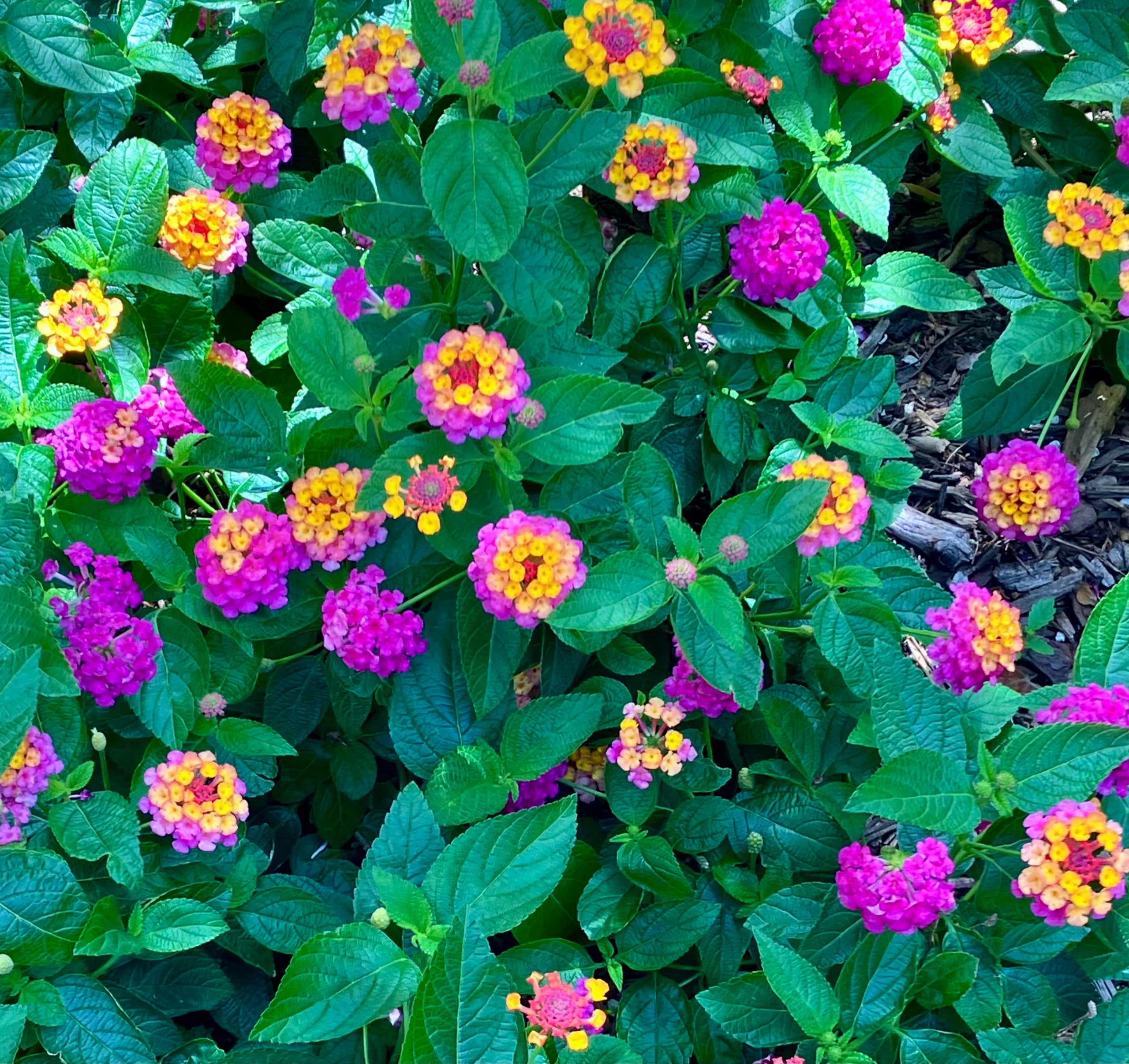 I was unexpectedly obliged to spend several weeks of July in upper Manhattan. It was a scorching, humid stretch of time, the sidewalks shimmering under an unrelenting sun. The city tends to absorb heat, like the black clothing preferred by so many of its stylish denizens, adding to the uneasy sense that the whole place might self-combust at any moment. It finally did one night when a gargantuan storm swept through, thunder and lightning ricocheting from river to river, followed by an epic downpour that set off a geyser in the subways and fatally flooded parts of New Jersey. Still, in a city of ceaseless noise and movement, you can always find little pockets of beauty. Like the latana in the photo above that blanketed a tree bed near Riverside Park – each flower aswirl with brilliant hues and delicate shapes, thriving despite the grime and dogs and heat.